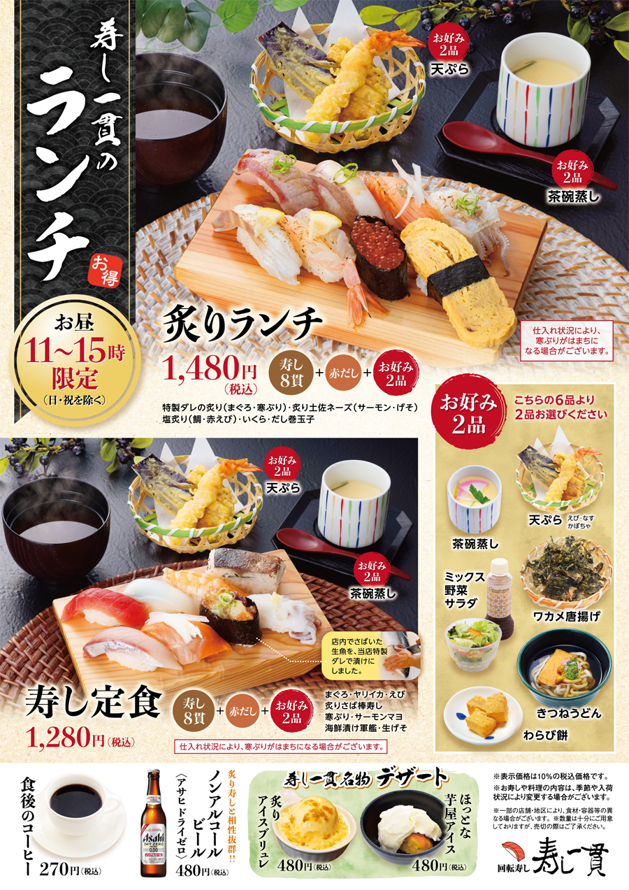 土佐近海の旬のネタをふんだんに。 そして寿しには欠かせない名物ネタは全国各地から鮮度の良いうちに取り寄せて。 目の前でにぎり、皆さまのもとへ。まわる楽しさと、豊富なおいしさで「もてなし勝負」をしております。